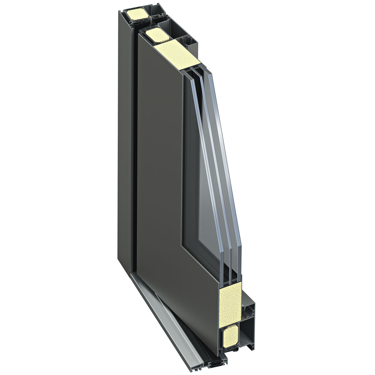 - Thermoplus-Dämmung: Ausgeklügelte Kammergeometrie des Profilsystems, gepaart mit Wärmedämmschaum, reduziert Wärmebrücken, auch im Eckbereich